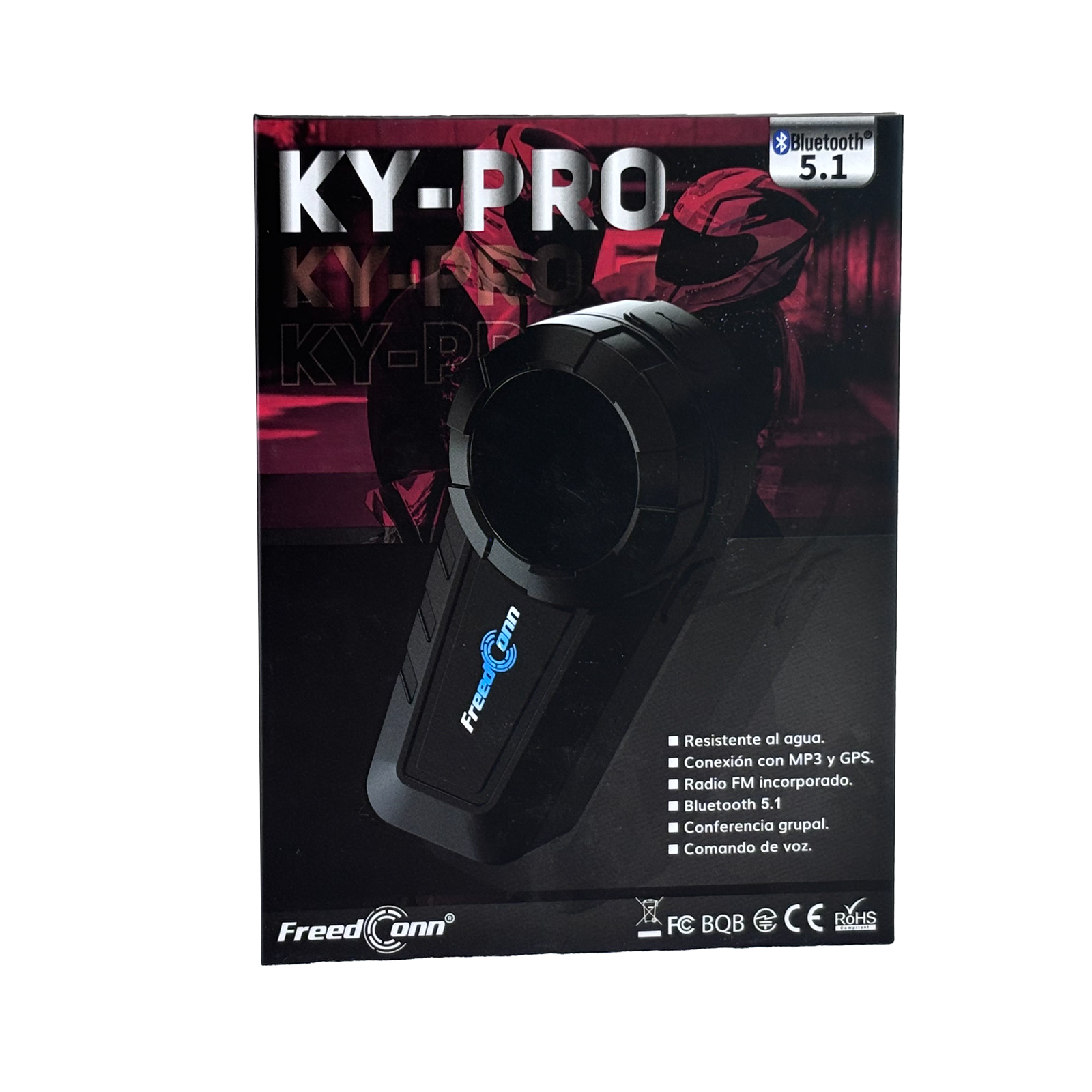El intercomunicador KY PRO es un sistema de comunicación Bluetooth 5.1 diseñado para motociclistas, con capacidad de conexión de hasta 6 usuarios en cadena, manteniendo la mejor calidad de audio hasta 4 usuarios simultáneos. Ofrece un alcance de hasta 2000 metros en espacio abierto en conexión en cadena y hasta 1000 metros entre dos conductores, incluso a velocidades de hasta 120 km/h.